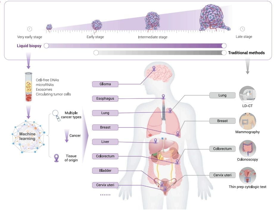 Phương thức sàng lọc ung thư hiện tại chỉ có sẵn cho một số ít bệnh ung thư và chúng thường không đạt hiệu quả với những phương thức sàng lọc xâm lấn phức tạp. Vì vậy, thúc đẩy một nhu cầu cấp thiết để phát triển các phương pháp phát hiện sớm ung thư đơn giản, chính xác, không xâm lấn. Sự thay đổi di truyền và biểu sinh trong DNA tự do tuần hoàn trong huyết tương (cfDNA) đã cho thấy tiềm năng cách mạng hóa các phương pháp phát hiện sớm ung thư và tạo điều kiện chẩn đoán tiếp theo để cải thiện khả năng sống sót của bệnh nhân. Mối quan tâm y học đối với các xét nghiệm máu phát hiện cfDNA đã được truyền cảm hứng từ các nghiên cứu ứng dụng công nghệ sinh thiết lỏng tầm soát đa/đơn ung thư.